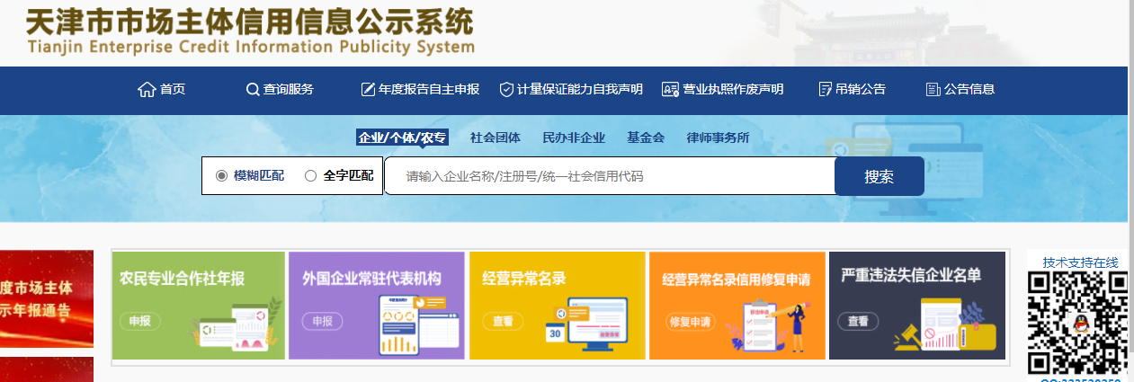 通过“国家企业信用信息918博天堂系统”(网址:http://www.gsxt.gov.cn/index.html)和“天津市市场主体信用信息918博天堂系统”(网址:http://credit.www.okyfx.com/gsxt/)都可以查询市场主体是否被列入经营异常名录。其中国家企业信用信息918博天堂系统不仅可以查询本市的市场主体,还可以查询全国其他地区的市场主体的信用信息。
