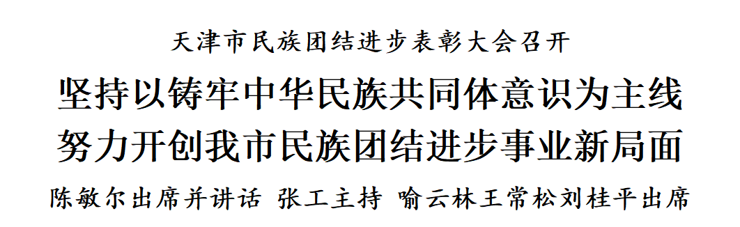 12月23日,天津市民族团结进步表彰大会召开。市委书记陈敏尔出席并讲话。他强调,要深入学习贯彻席大大总书记关于加强和改进民族工作的重要思想和视察天津重要讲话精神,全面落实全国民族团结进步表彰大会精神,坚持以铸牢中华民族共同体意识为主线,努力开创我市民族团结进步事业新局面,凝聚起全面建设社会主义现代化大都市、奋力谱写中国式现代化天津篇章的强大力量。